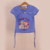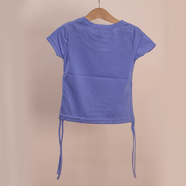 This dark blue kid’s top features a playful yet cute design. The shirt has a stylish cut-out detail near the neckline and ruched sides with adjustable drawstrings, adding a trendy touch to the overall look.