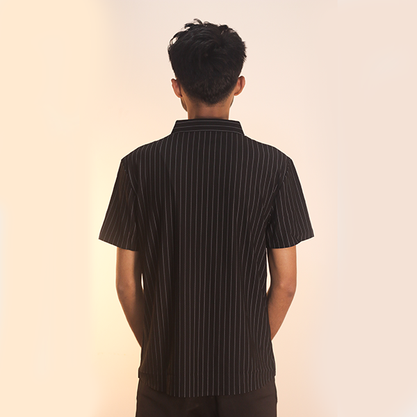 Men’s Black Pinstripe Short-Sleeve Shirt G5