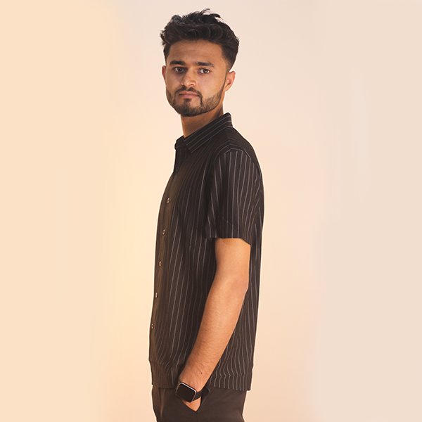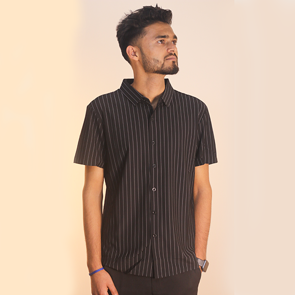Look sharp and stylish with this black pinstripe short sleeve shirt. Featuring a classic collar, button-down front, and breathable fabric, it’s perfect for both casual and semi-formal wear.